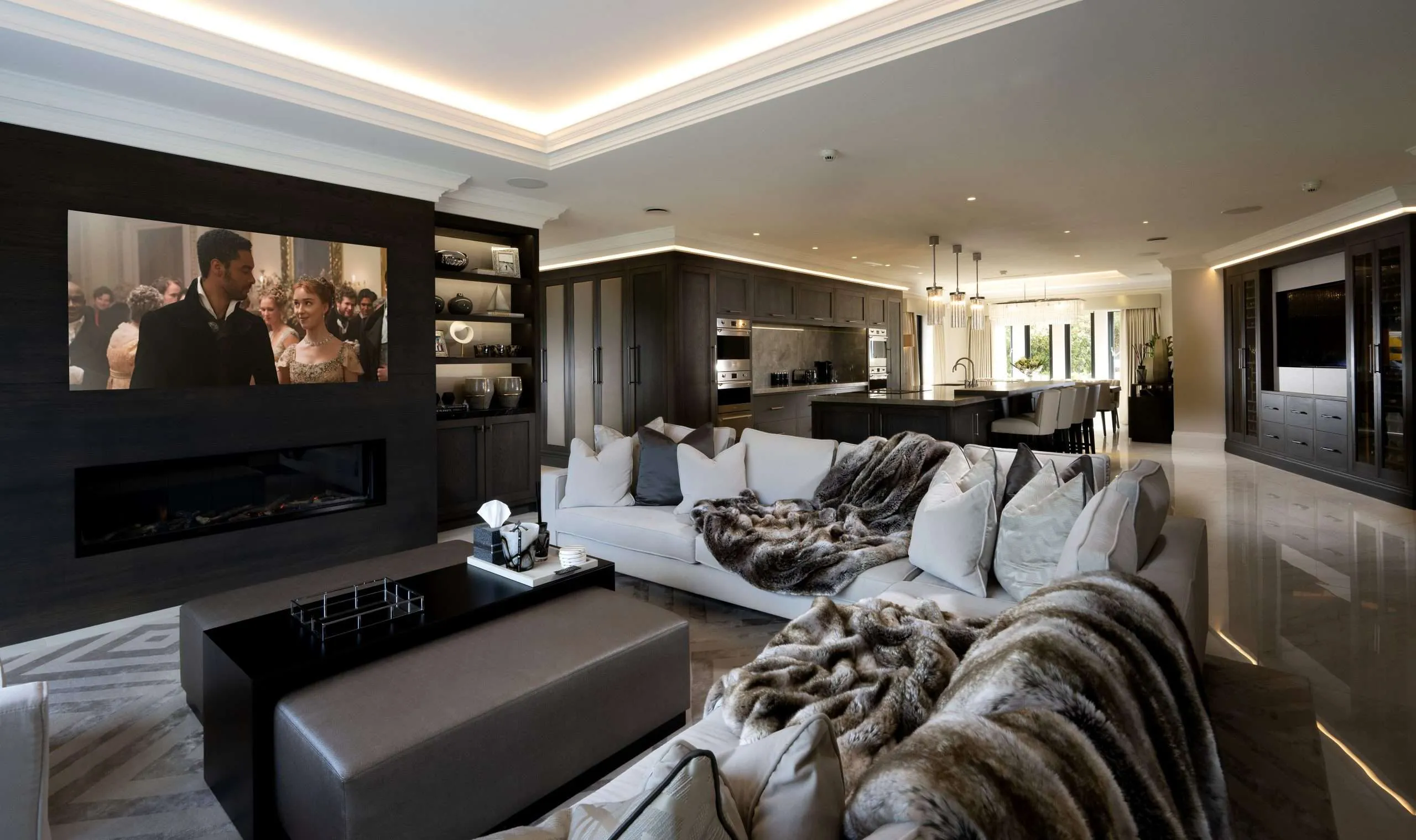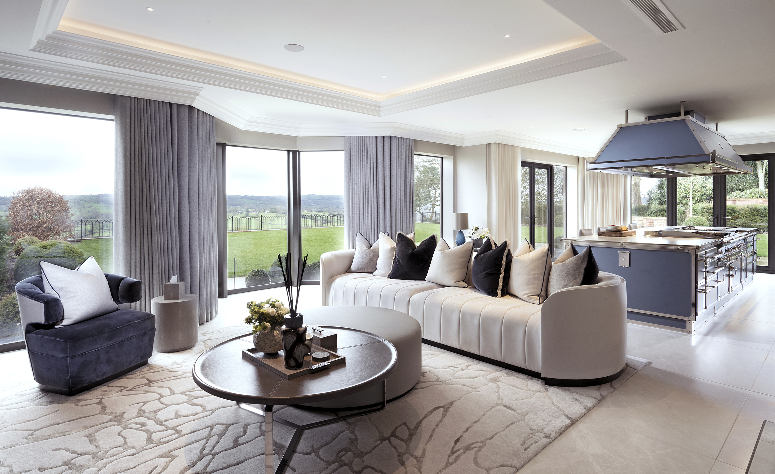 As well as using sleek Italian furniture with pops of colour in the softer furnishings such as the cushions and throws to delineate zones.