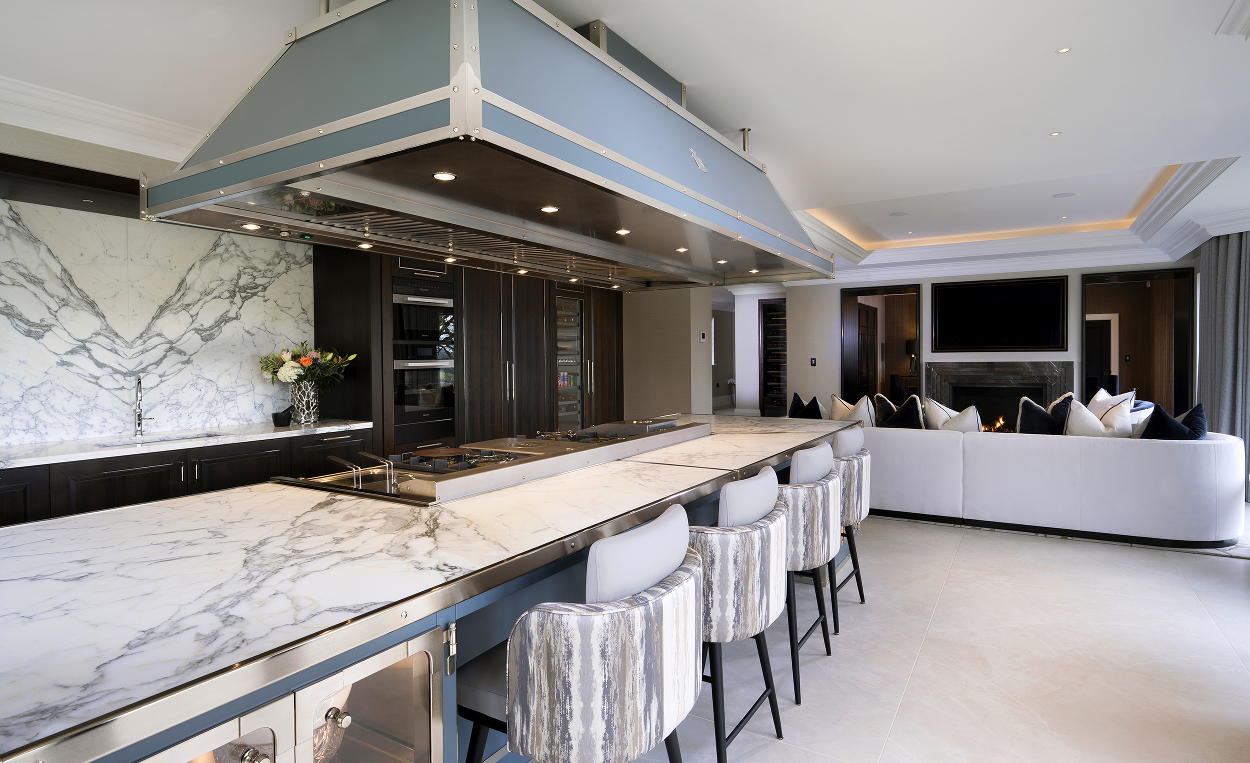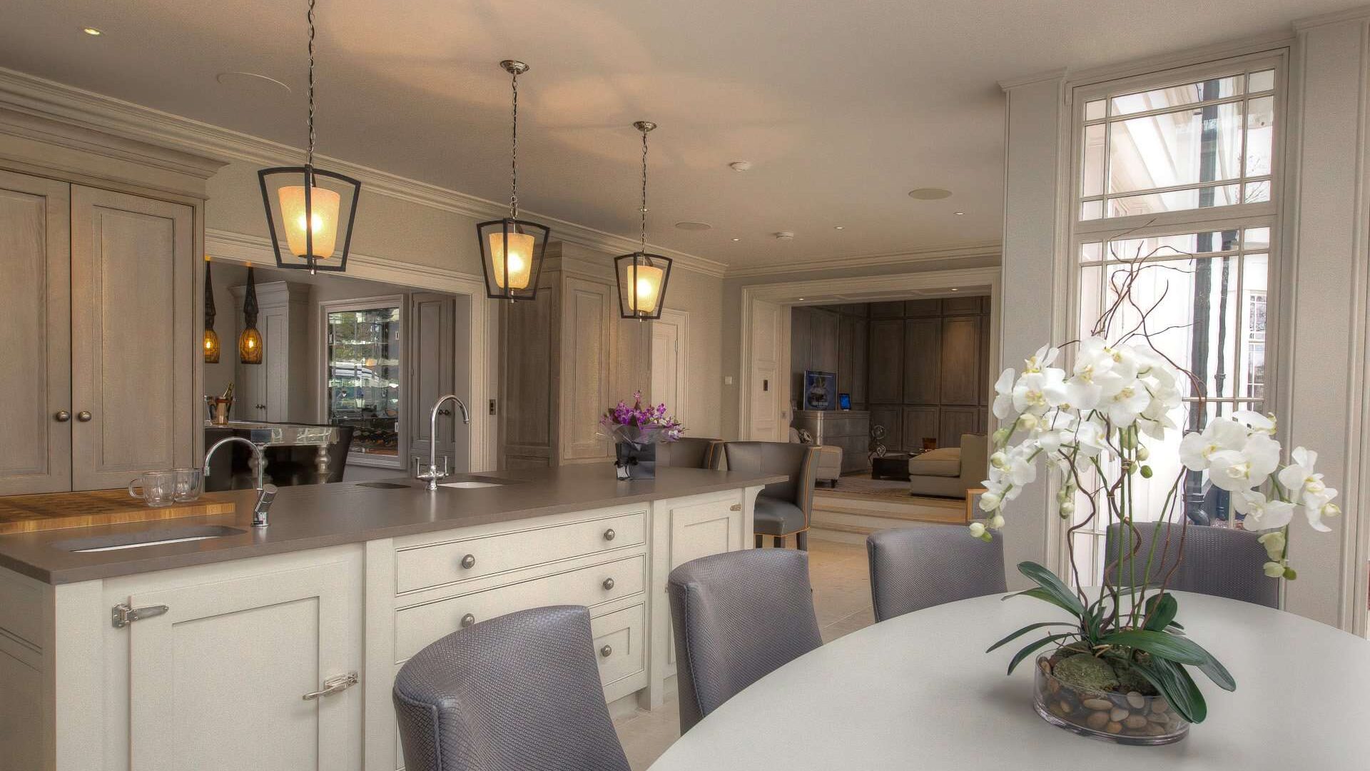 Things we consider when designing a bespoke kitchen – a large central bespoke kitchen island. This is often seen as a beautiful focal point in any luxury kitchen as well as holding an infinite amount of practical value.