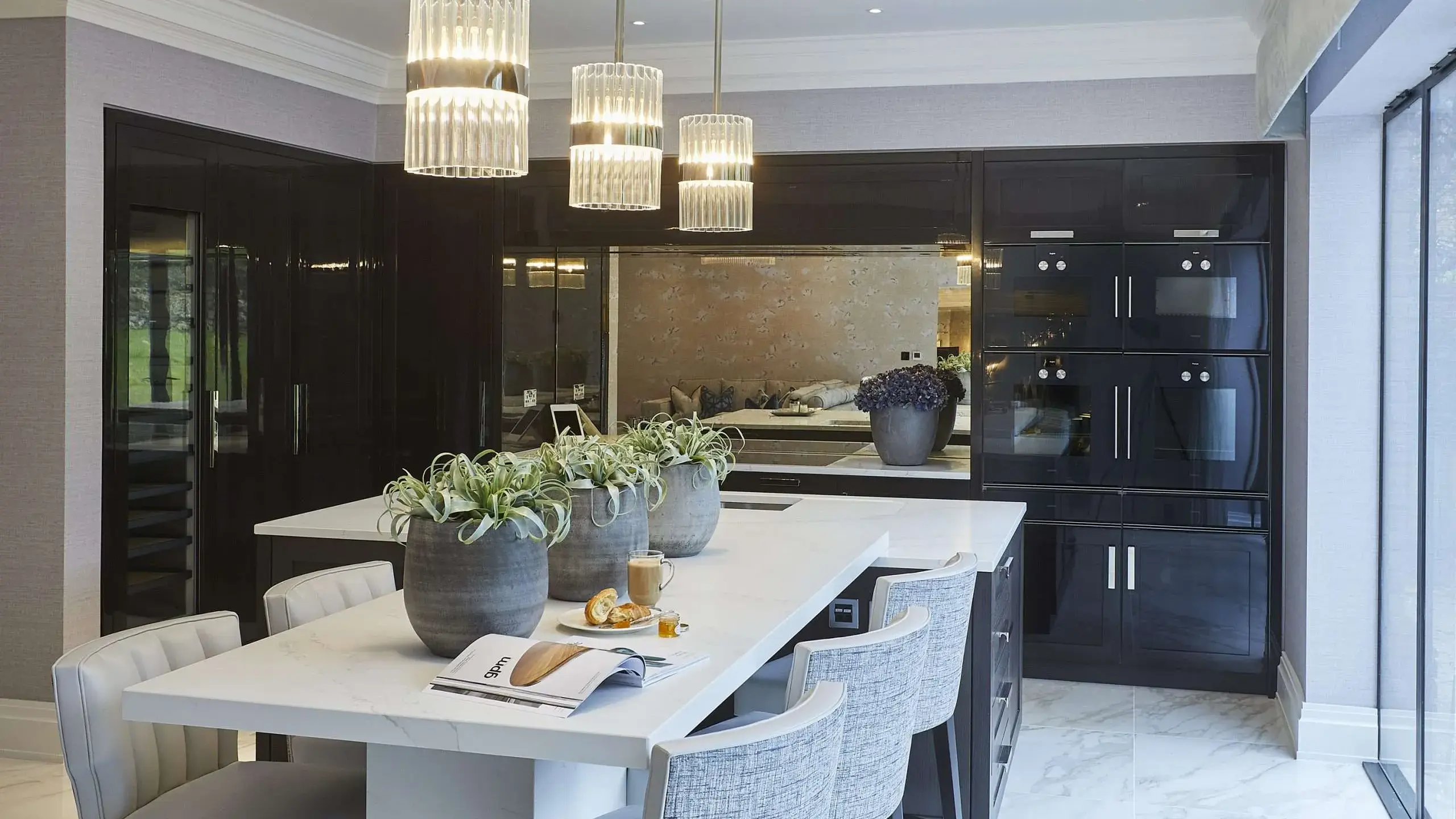 A kitchen wouldn’t be complete without impactful, striking lighting. Integrating large low hanging chandeliers and pendant lights over your kitchen island will bring plenty of light into the space, making it appear more spacious as well as adding a touch of opulence.