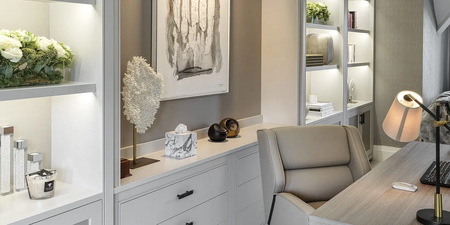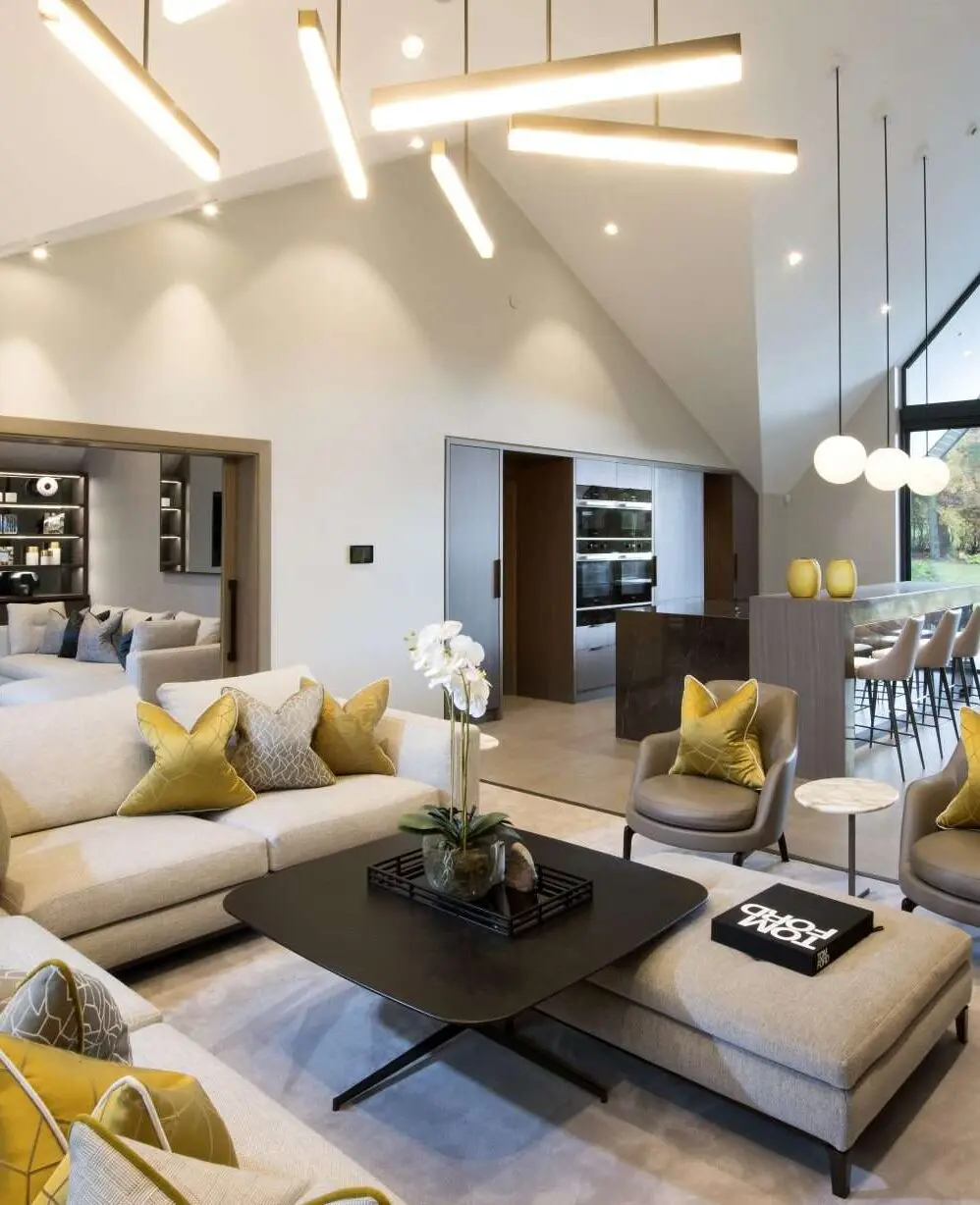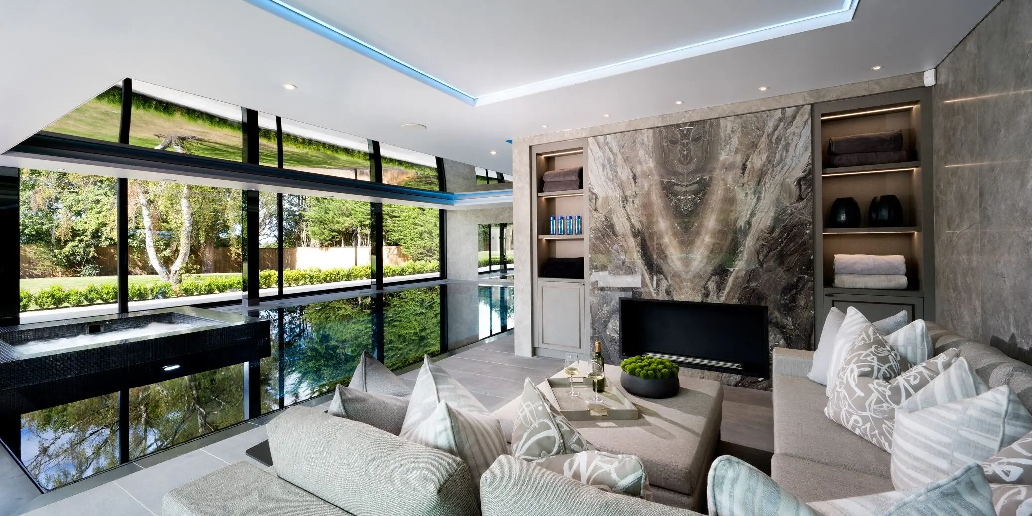 - Bespoke joinery and focal elements, from marble-clad fireplaces to contemporary media walls.