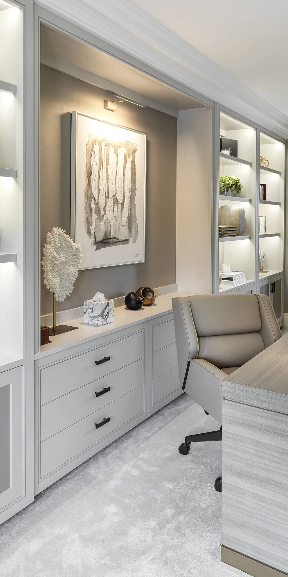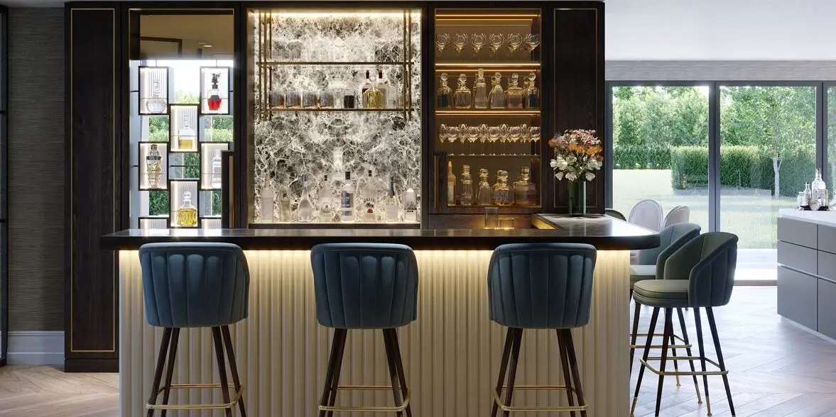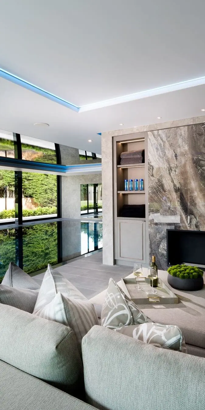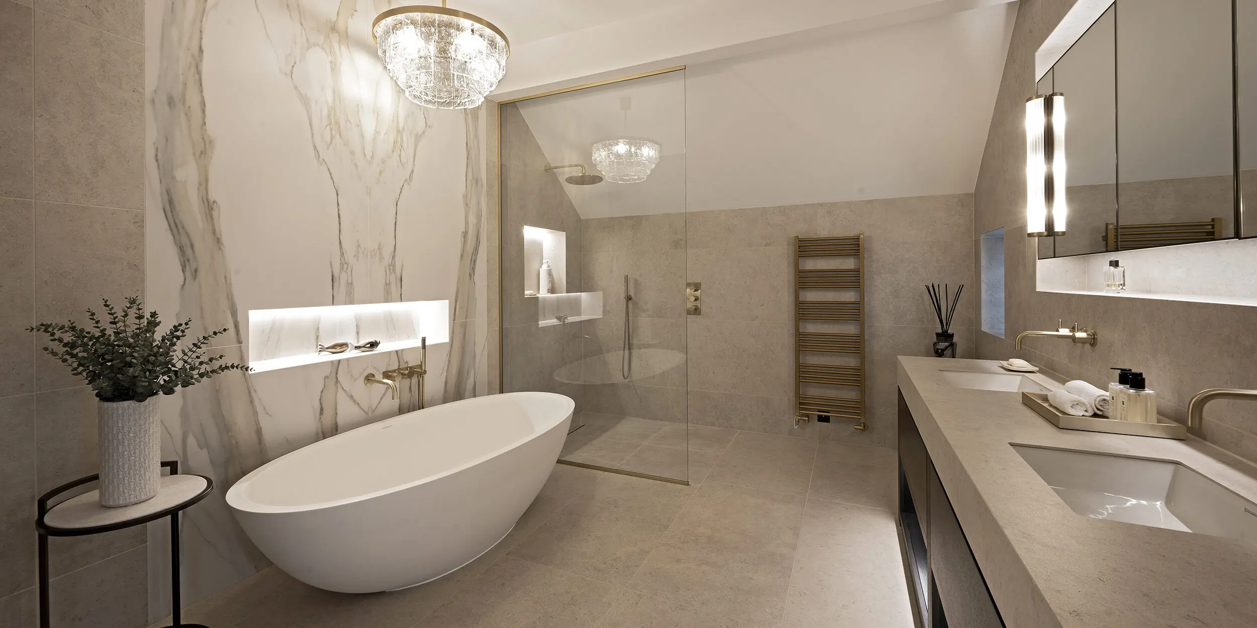- Bespoke joinery and focal elements, from marble-clad fireplaces to contemporary media walls.