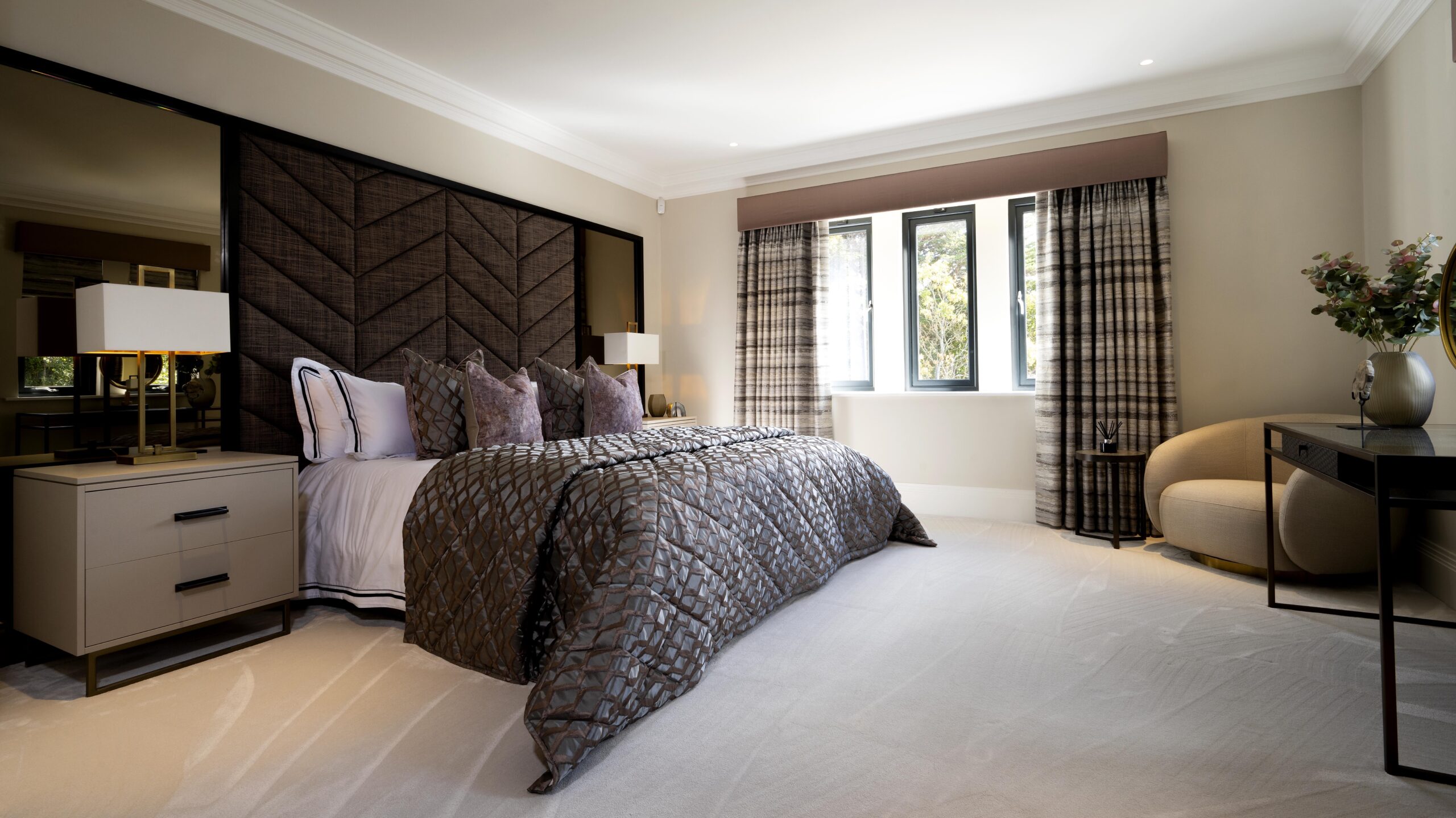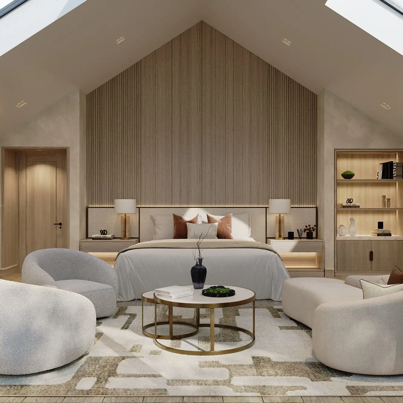 A carefully chosen colour palette sets the tone for the entire space. Soft neutrals such as ivory, taupe, and warm grey are timeless and calming, creating a perfect canvas for deeper accent tones like brown, navy, or bronze. Alternatively, dark and moody hues can create an intimate, cocoon-like atmosphere, ideal for unwinding at the end of a long day.