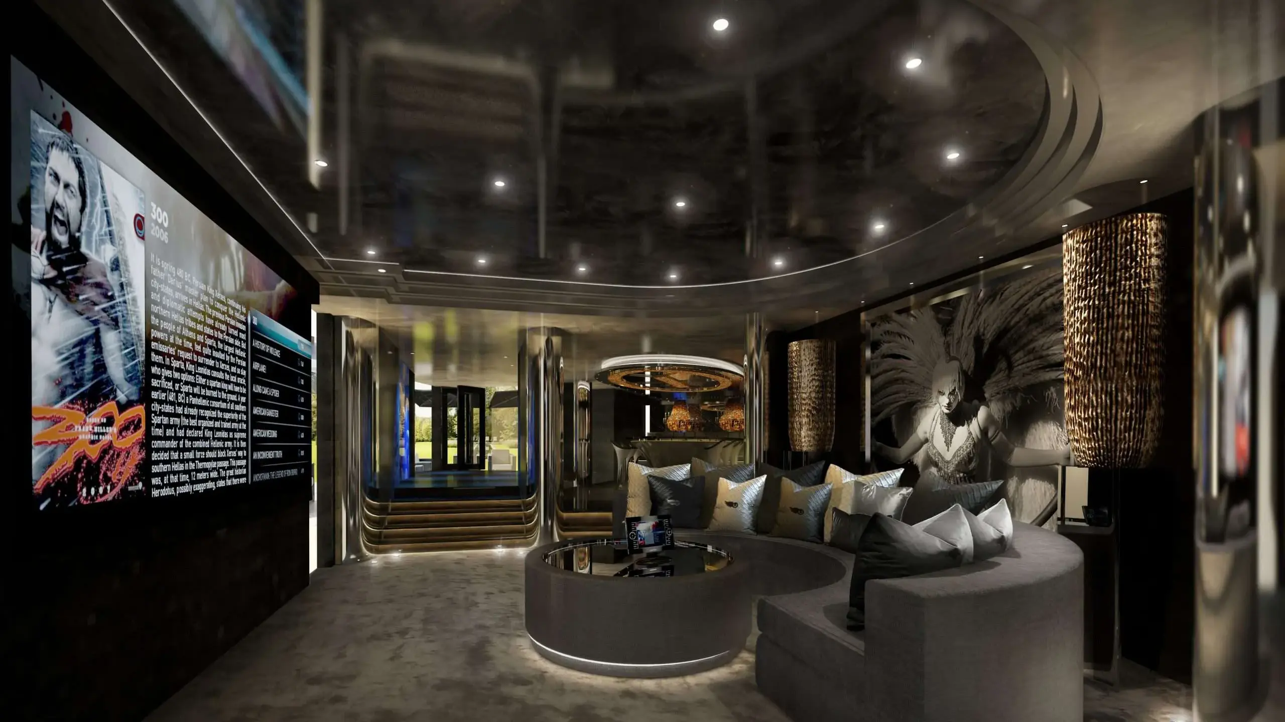Ship-like bar, dance floor and cinema off the pool complex