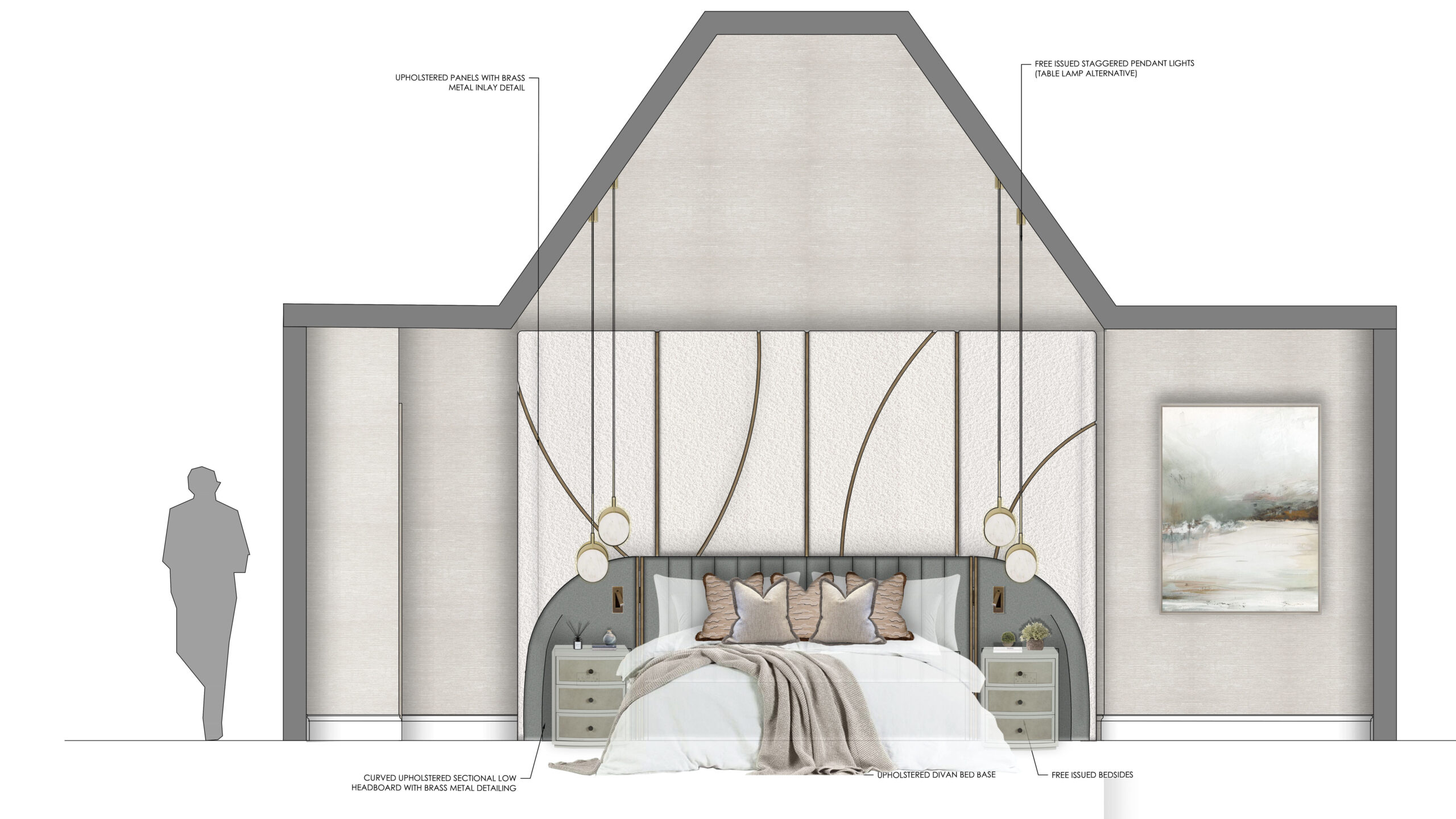 We then support this with samples of key materials for you to understand the level of finishes and touch points we are wishing to achieve. Layouts will show all key pieces of furniture to scale and in-situ so that you can really understand the space and lifestyle we are looking to achieve.