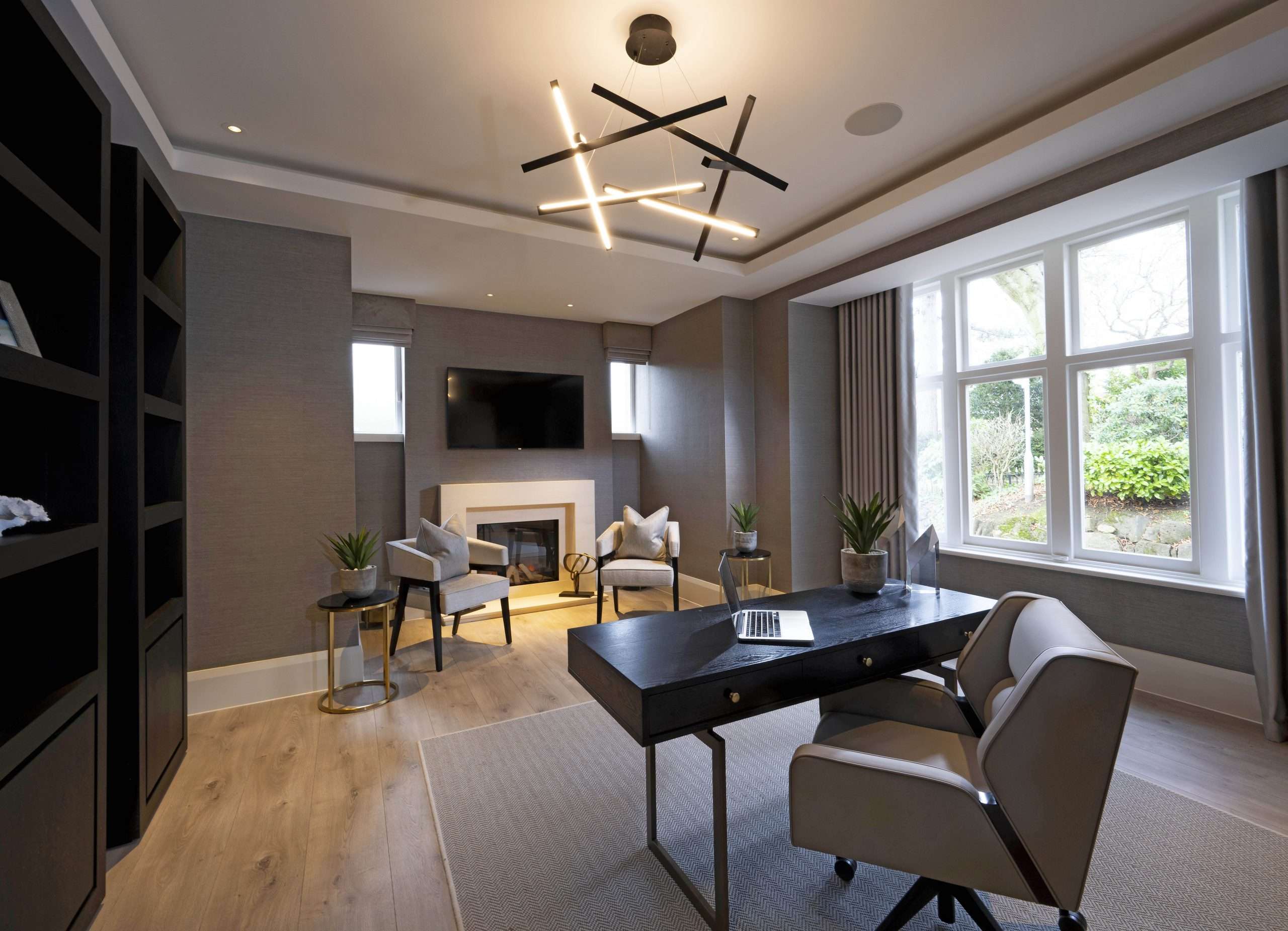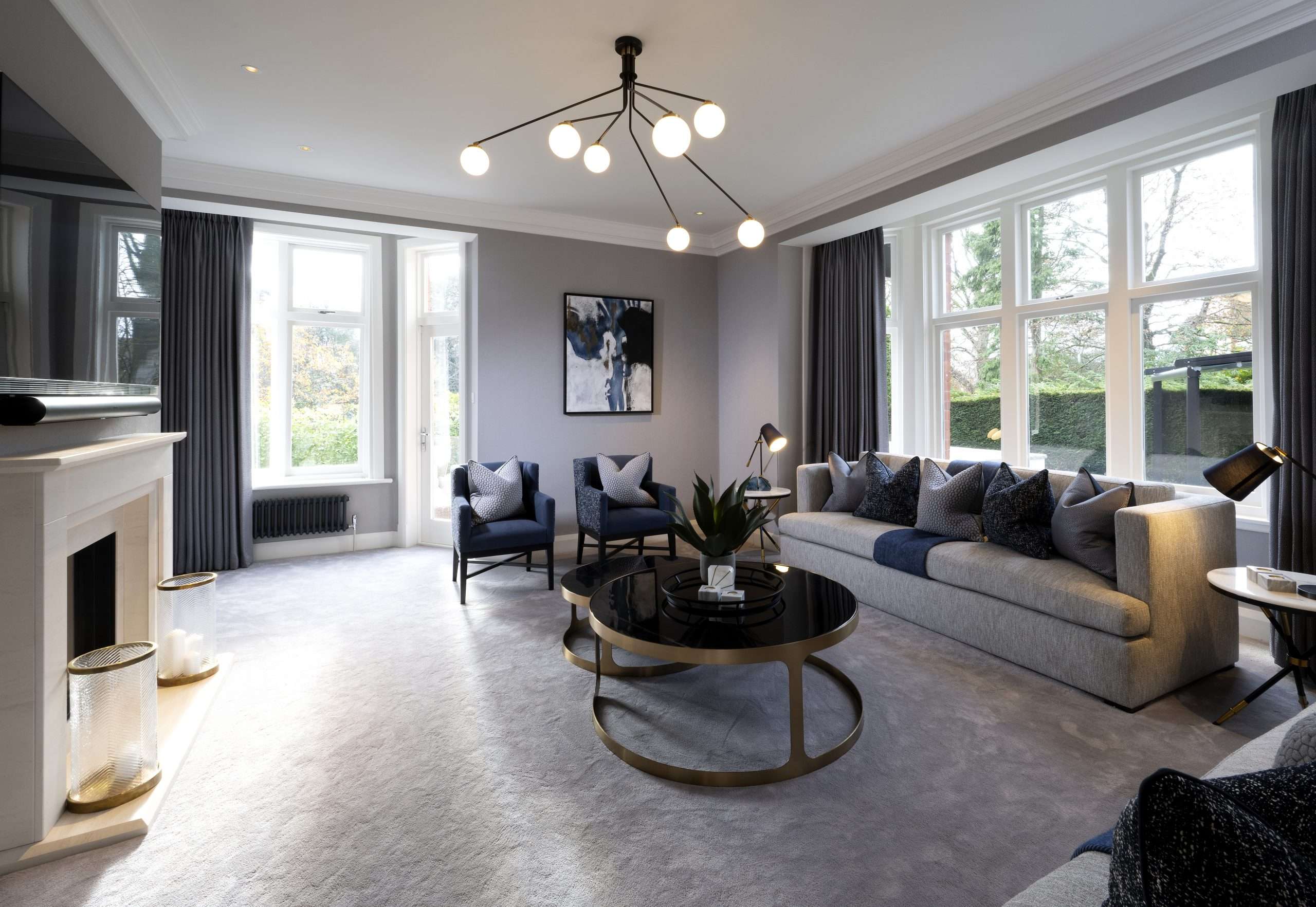 The newly refurbished lavish master suite incorporates a large walk-in wardrobe and dressing room, frosted double doors hiding a luxurious ensuite with separate sauna and shower rooms. There is also an intimate double seating area which is situated under a large window that looks out onto the home’s grounds, the perfect cosy place to curl up with a book and watch the world go by.