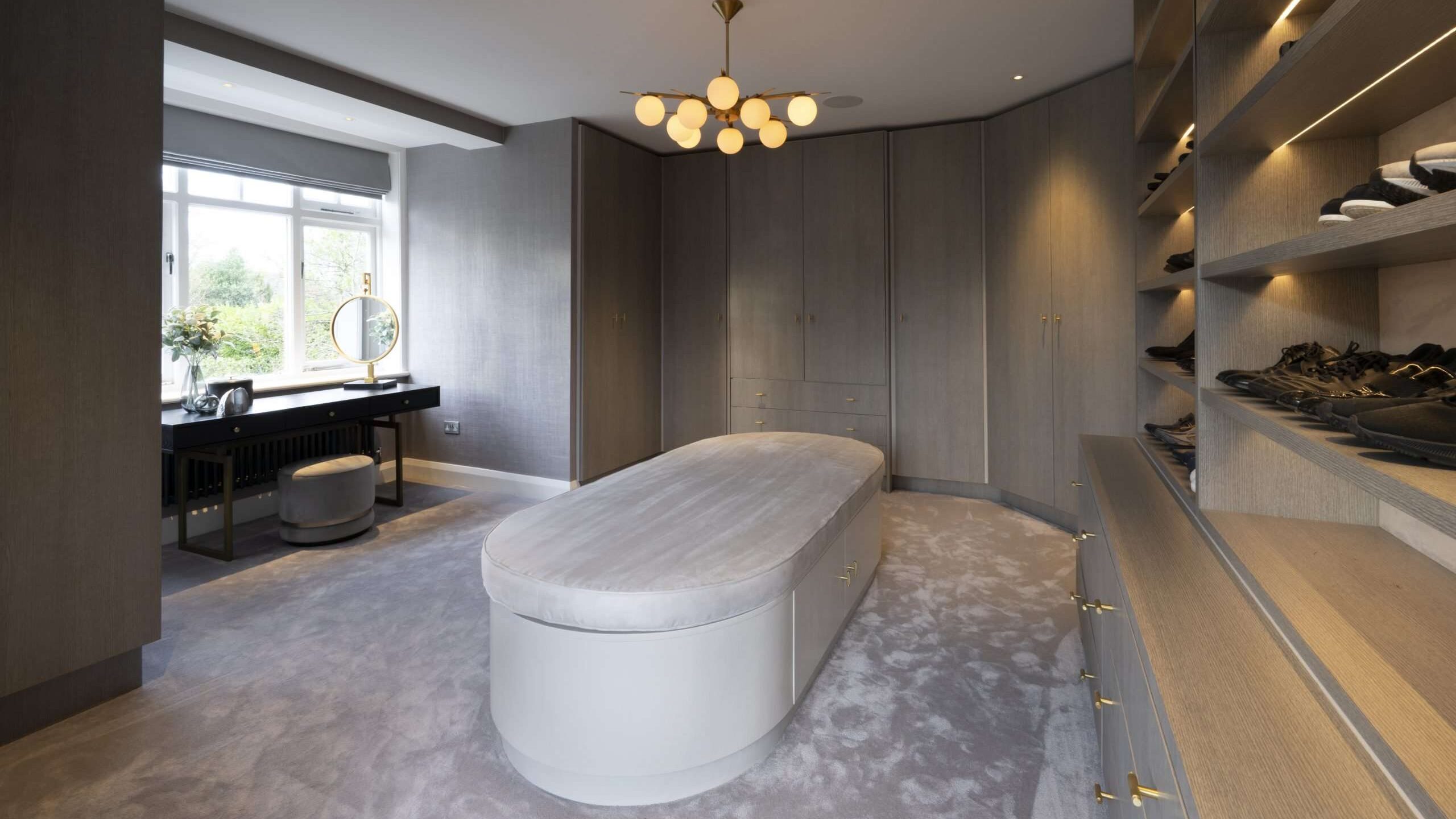 Along with new fitted door finishes, inlay colour, handles and a reupholstered ottoman, we further enhanced the look with a new dressing table ensemble and decorative ceiling light.