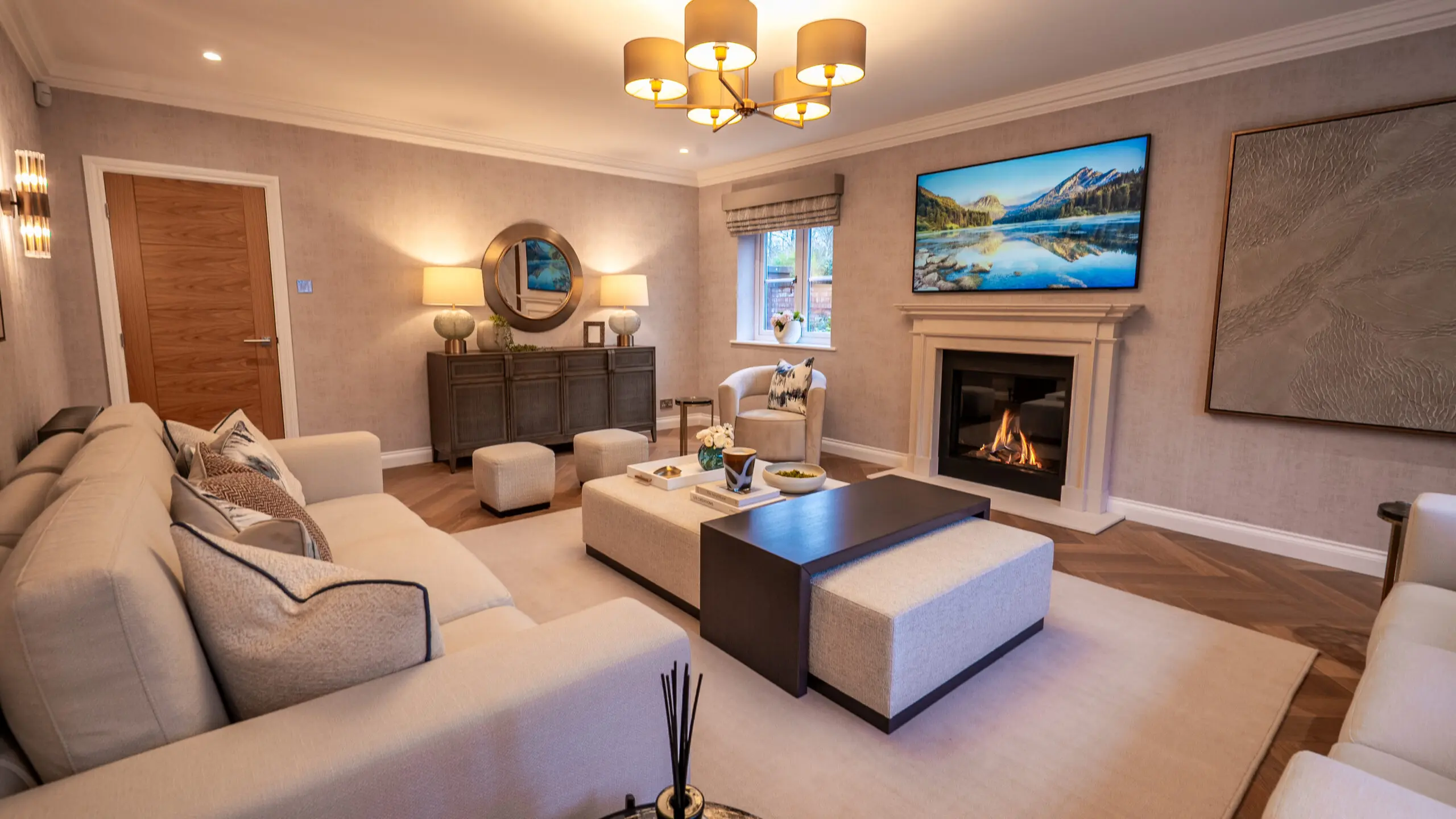Beyond its strong visual presence, the media wall incorporates practical concealed storage, enhancing both functionality and organisation. Its considered proportions and refined detailing ensure it feels fully embedded within the architecture rather than applied, reinforcing a sense of cohesion across the space.