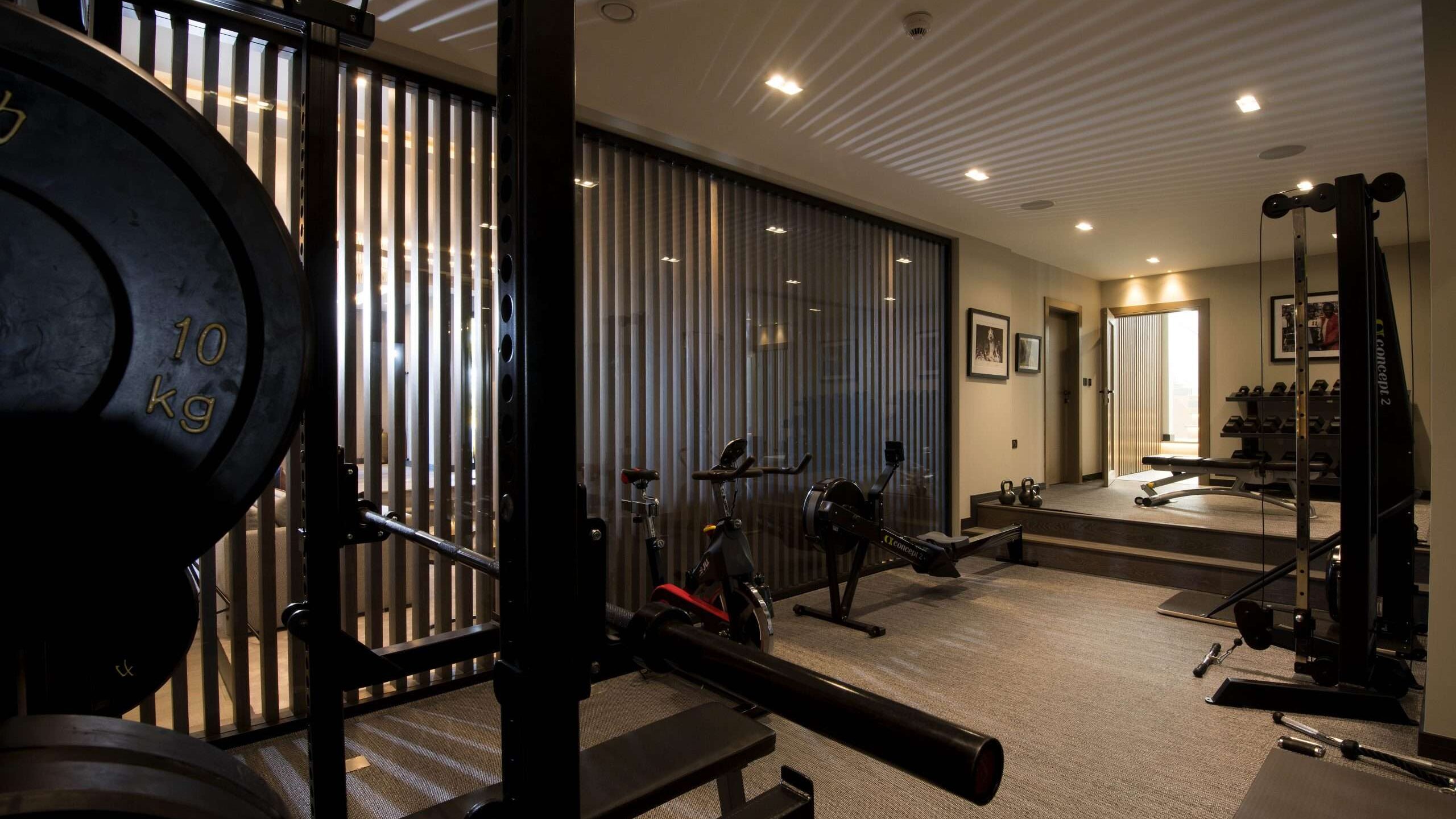 Adjacent to the bar is the hidden gym area. It is completely separated by a fully glazed vertical wall with wooden slat screens, ensuring the space is distinct whilst offering tantalising glimpses to and from the areas beyond.