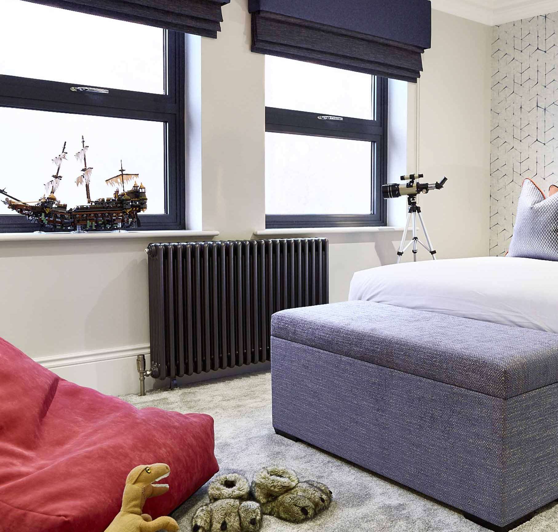 The children’s bedrooms on the first floor are both designed with very clear identities which are reflective of each child’s personality and age.