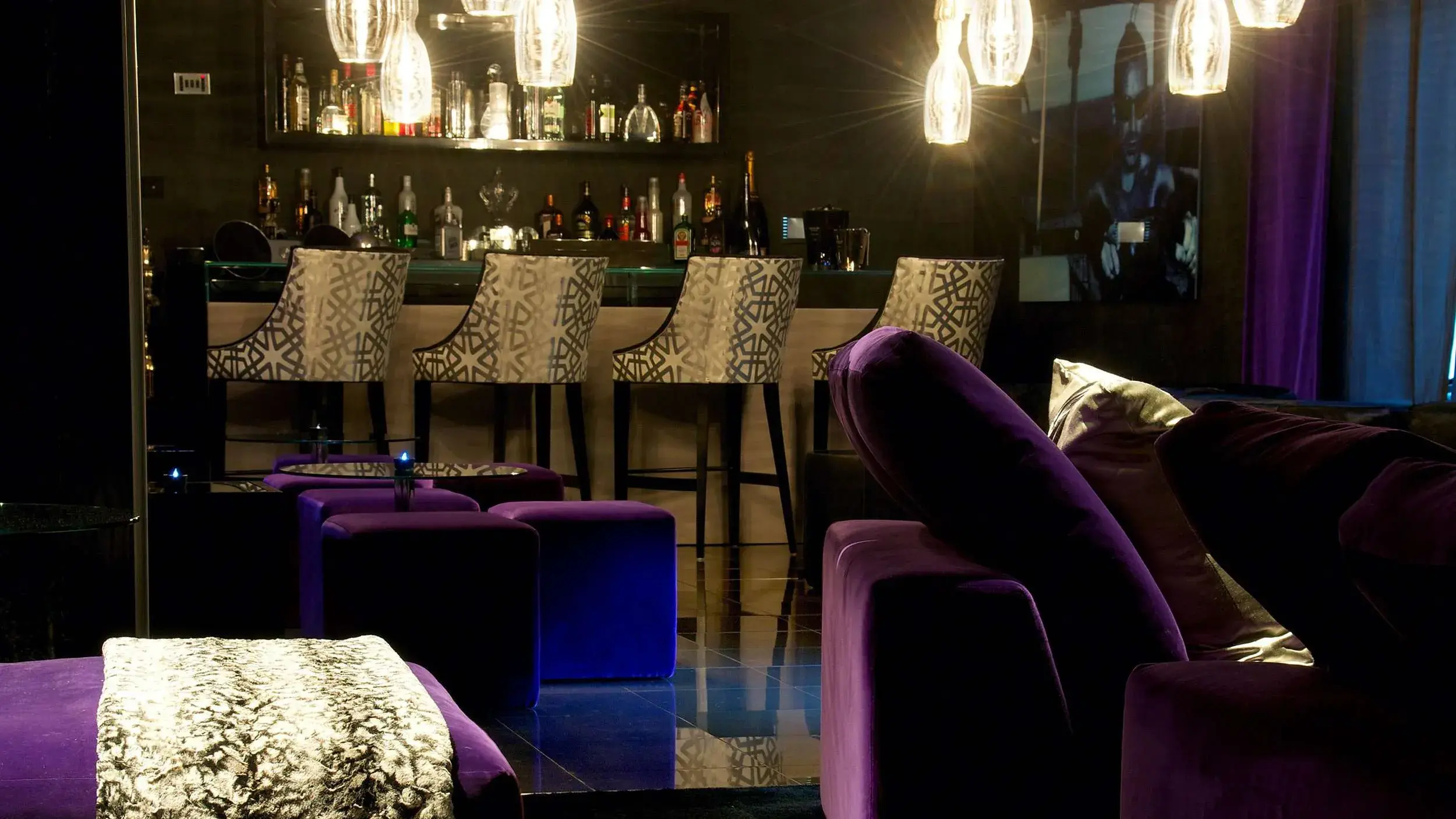 The design of the bar counter and back bar display draws guests into the central space, providing lavish comfort and all the ingredients of a perfect party night.