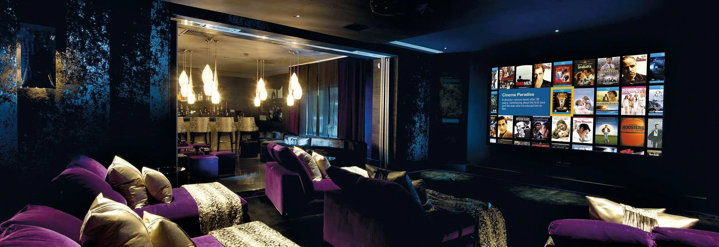 To create a family friendly, atmospheric and sumptuous cinema space that provided a dramatic backdrop to a bar for entertaining.