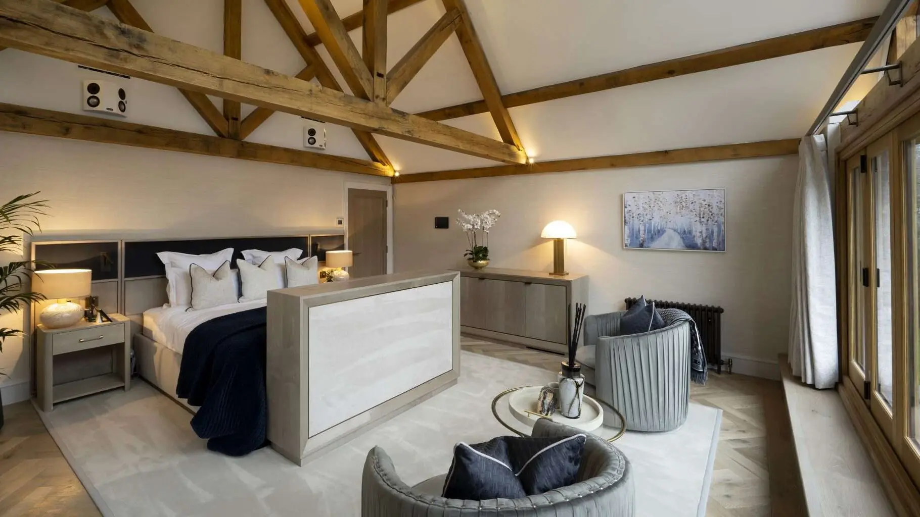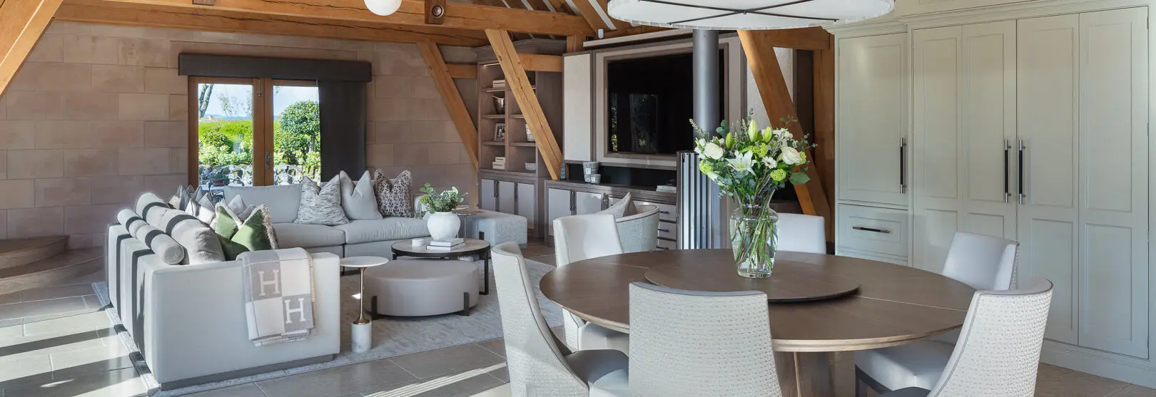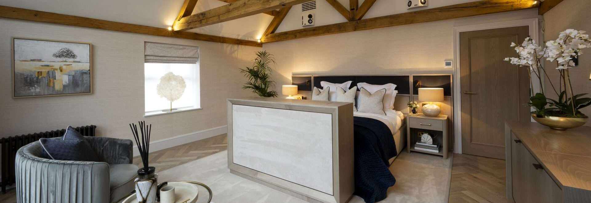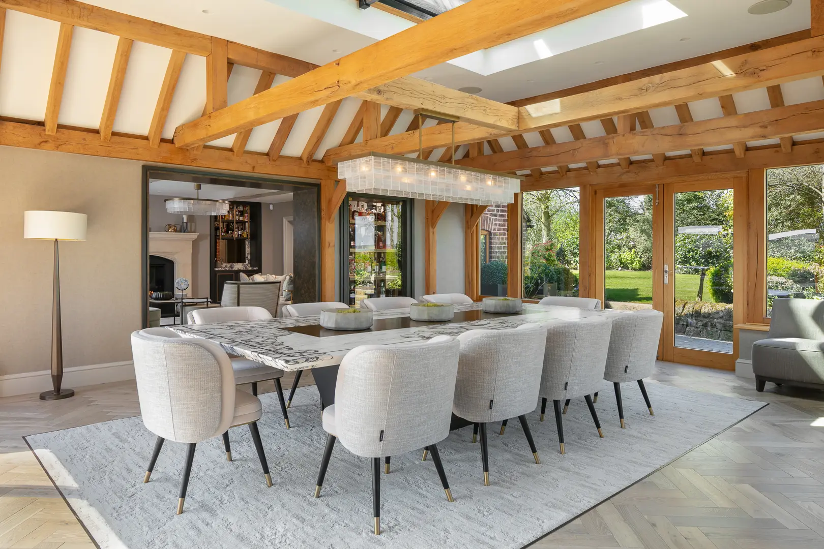 Tying into the property’s architecture of a modern barn house with a farmhouse feel situated in the heart of the English countryside, we played on light and warm tones which were introduced in the timber flooring and internal doors.