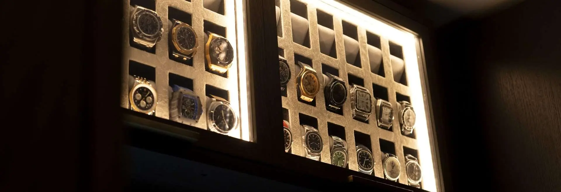 We also incorporated LED lit joinery above the window for our client to display his growing collection of luxury watches.