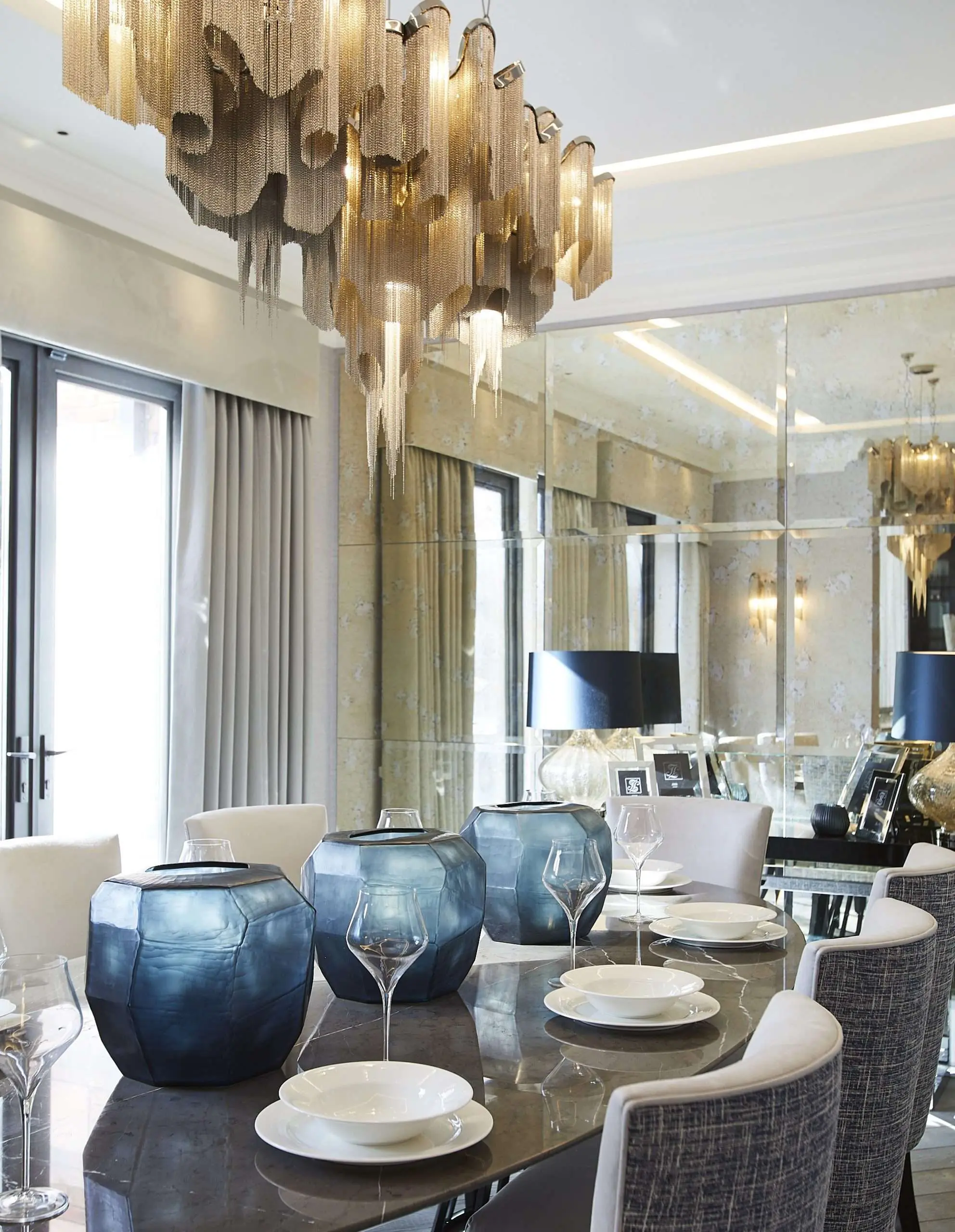 A base palette of silver and grey tones reinforces the feeling of tranquillity whilst infusions of colour are added with the soft furnishings and accessories. Exceptional finishes and feature lighting, sumptuous fabrics and high gloss timbers add an air of sophistication.
