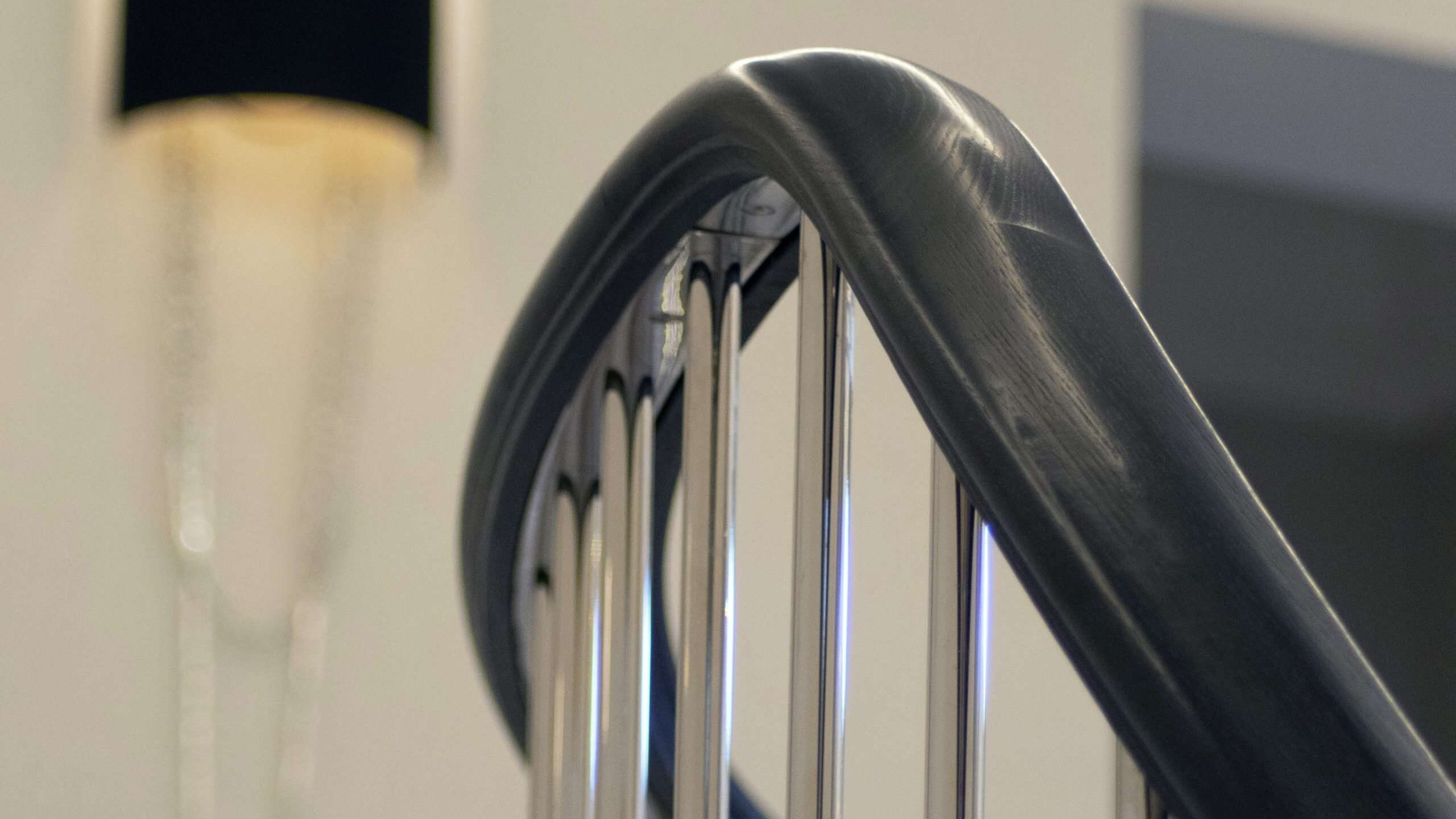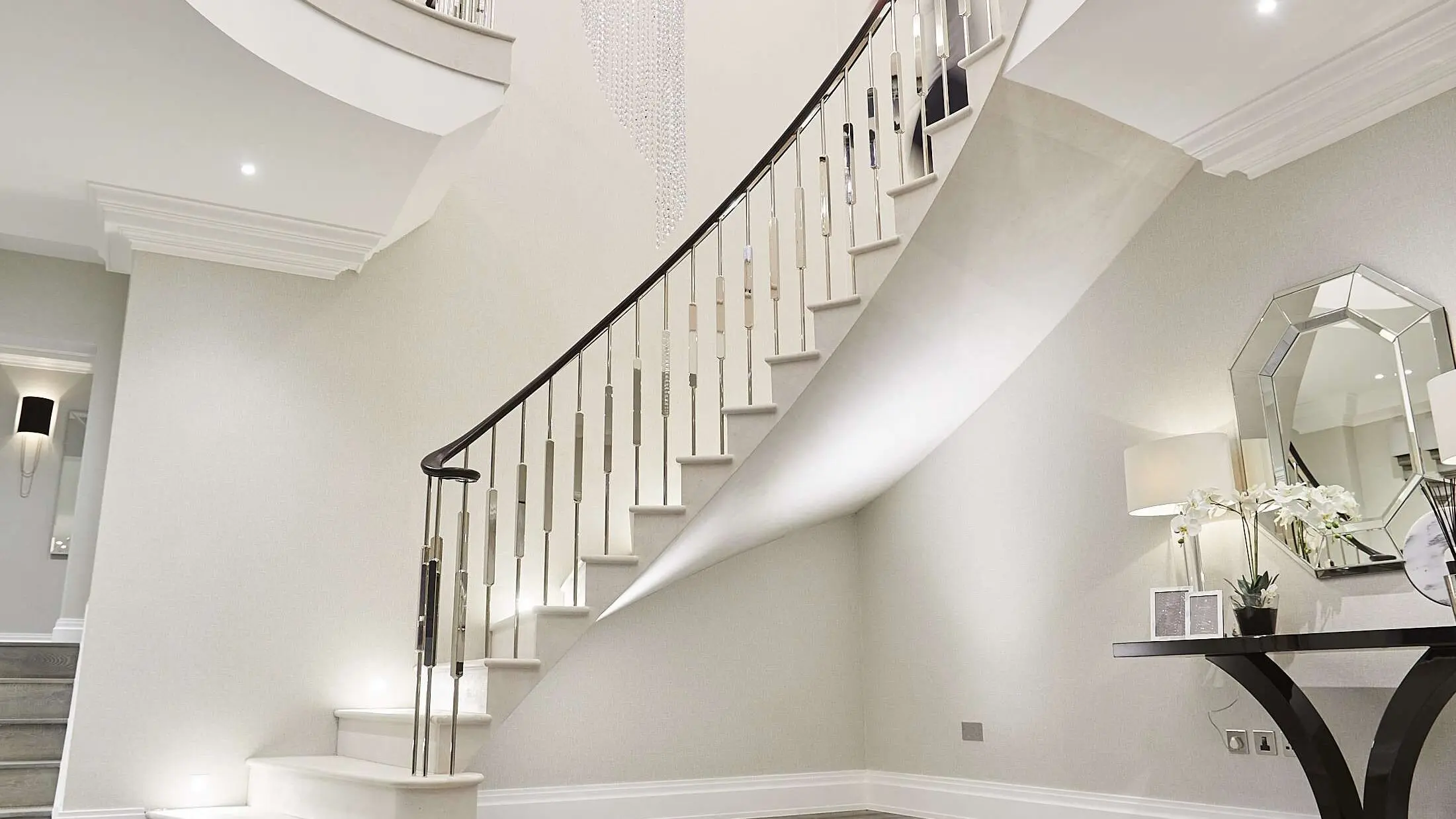 The entrance hall has been completely transformed from an awkward central wooden staircase into a new statement sweeping stair case. Featuring polished limestone, lustrous nickel balustrading and a dark stained timber handrail.