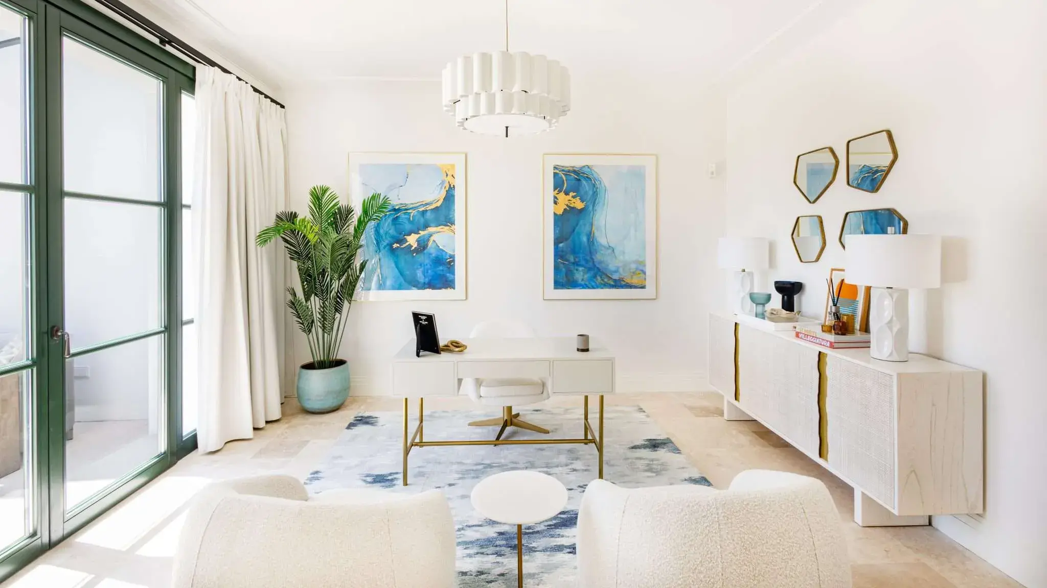 Our client is a business owner so he requires a space to work from whilst he and his family are staying at the Spanish Villa. We took inspiration from the beautiful sea views that can be seen from the villa.