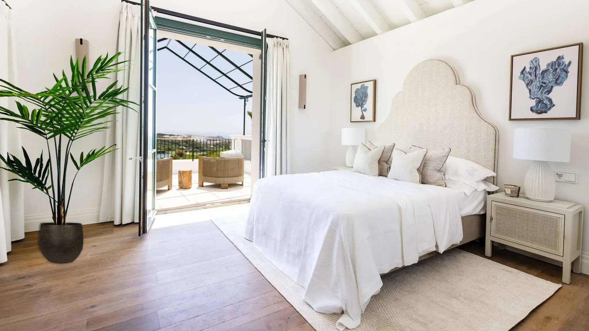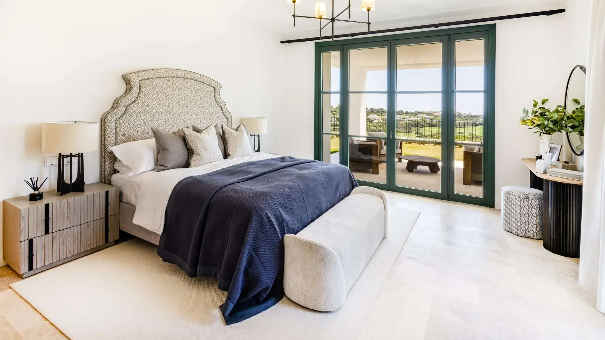 The vision for this space was to use a calming and neutral colour palette with pops of blue to complement the sea views. Designing bespoke headboards to add drama and a focal point to the room. Adding lighting and bedsides with a coastal look to complement the views.
