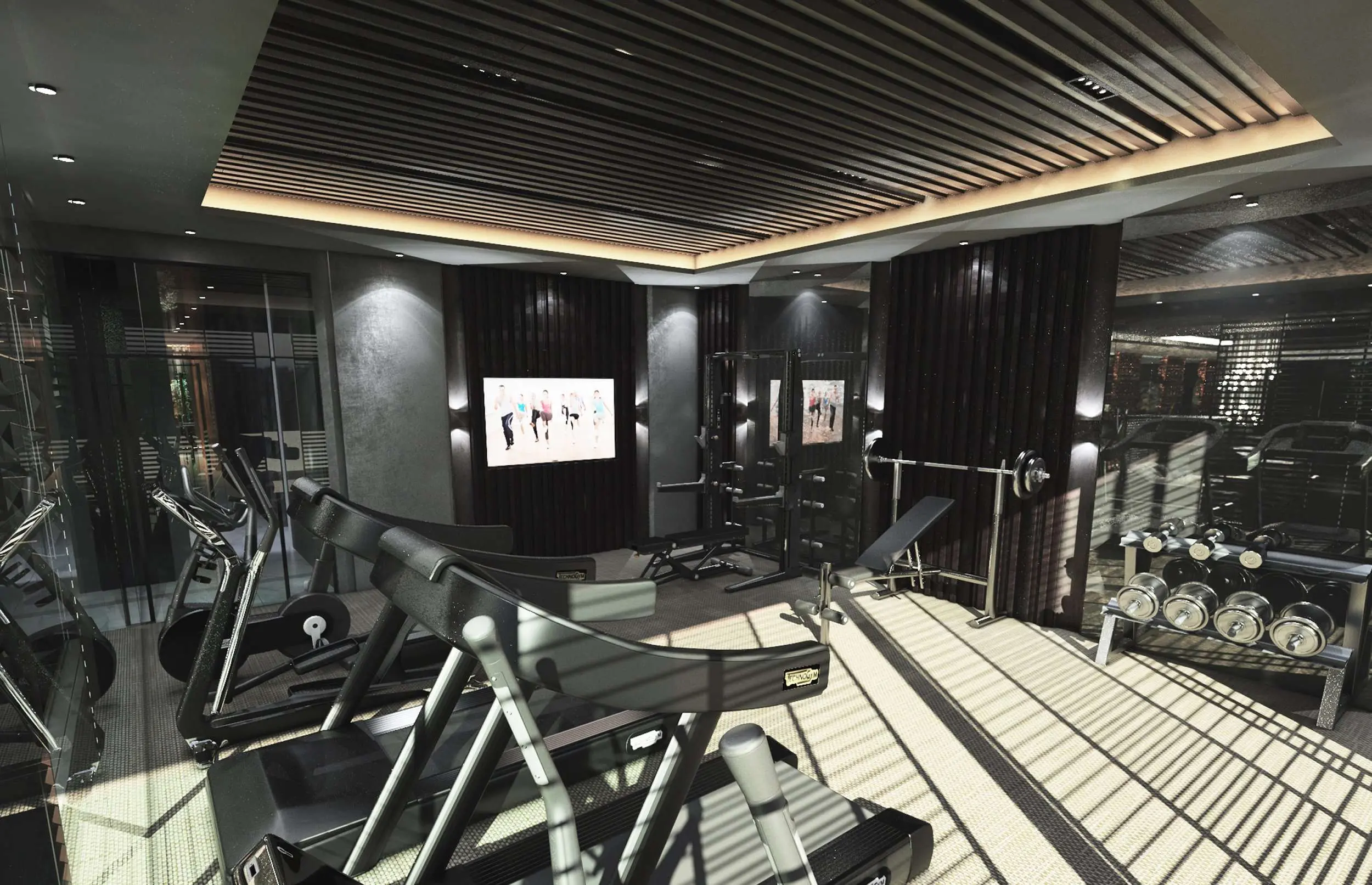 The rest of the wellness space – the gym, sauna, steam room and massage rooms are all designed to a similar spec.