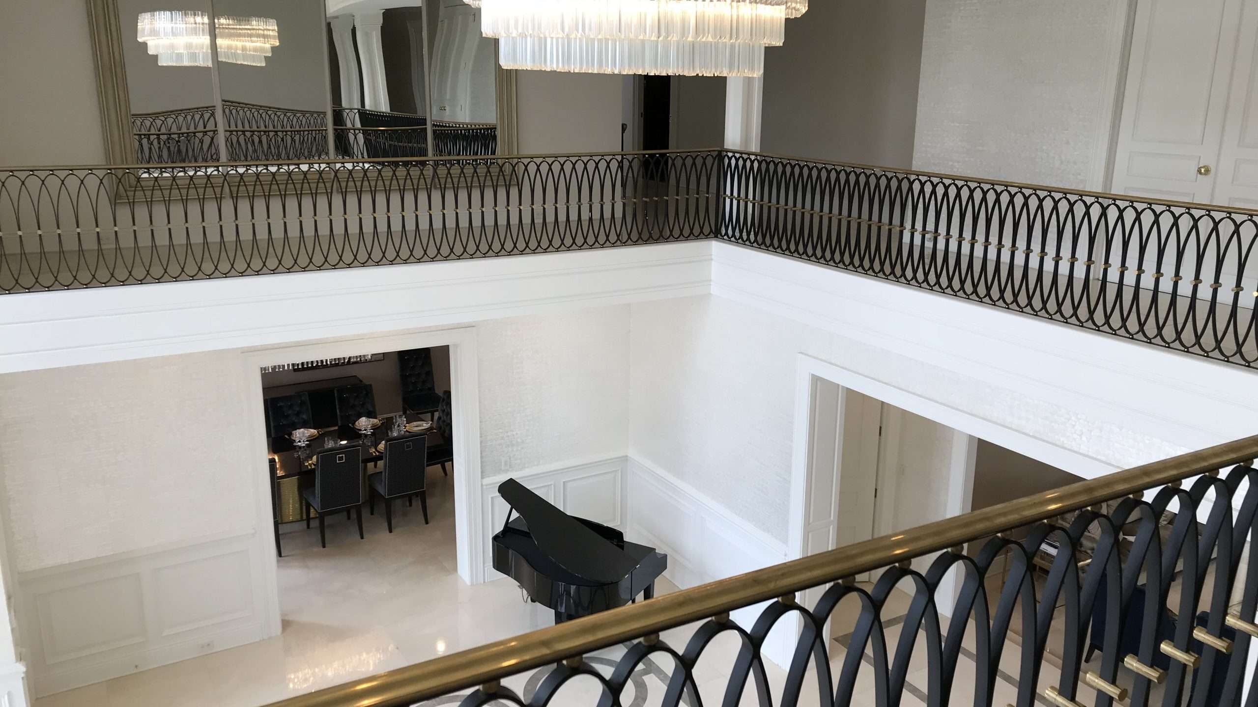 When entering the property it is clear that luxury finishes run throughout , from the water cut motif flooring in the grand hall, a design inspired by London’s Corinthia Hotel lobby to the mother of pearl wallpaper that embellishes the walls.