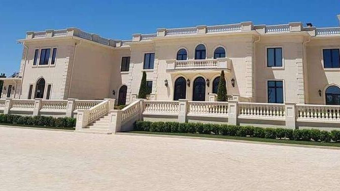 The property also boasts a full indoor leisure suite and pool, private gym and a basement entertainment area that features a bar, games room and a tiered movie theatre.